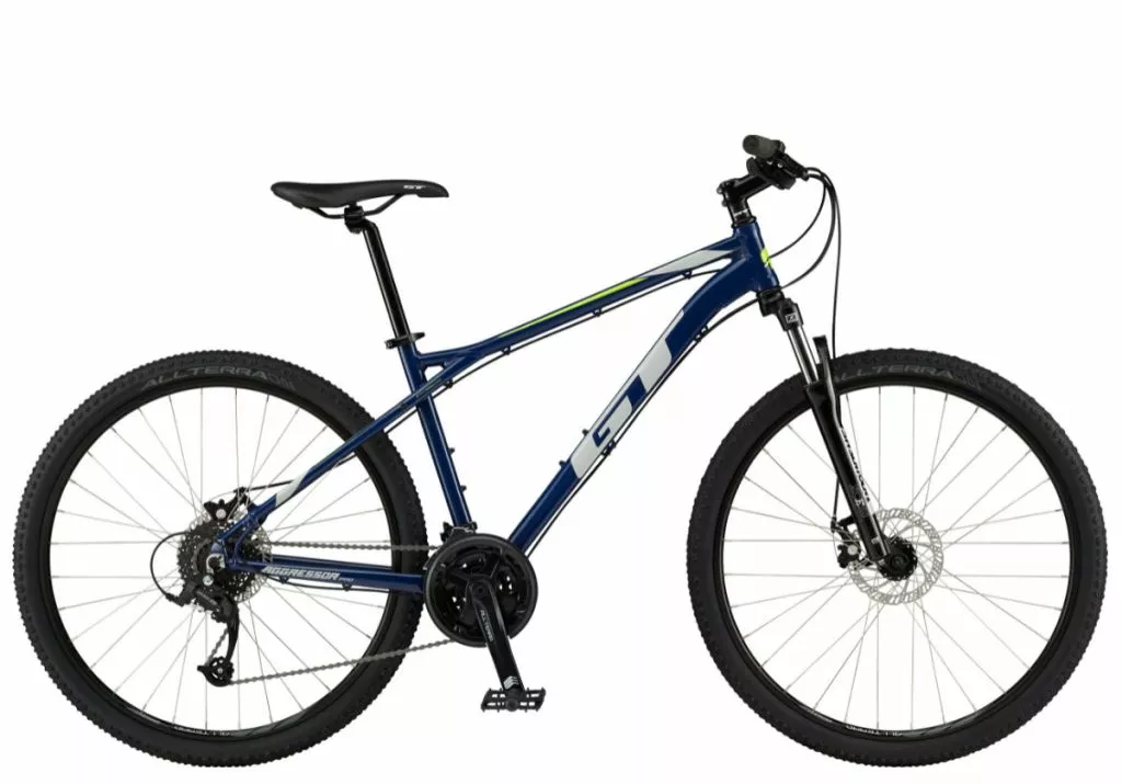 The Aggressor Pro is a brand new entry-level mountain bike from GT. It’s got an aluminium frame, disc brakes, front suspension and reliable gears.