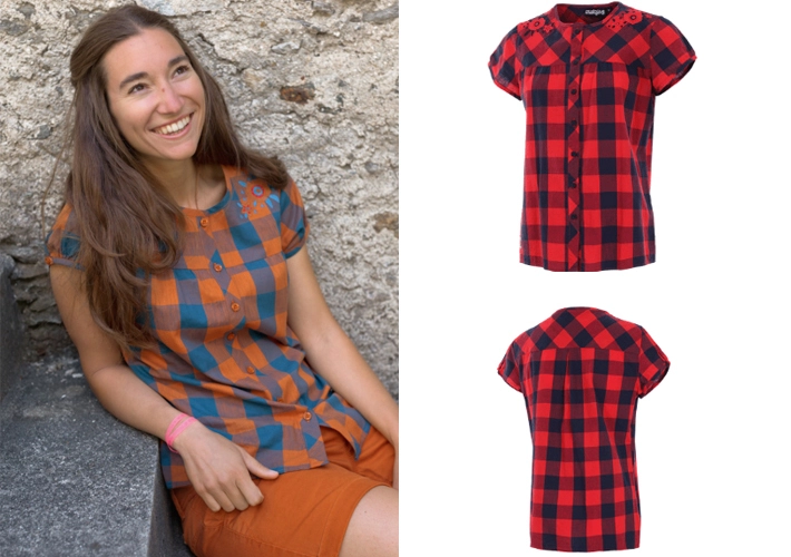 Charming little checker blouse with round neck and full-lenght button border made of pure cotton.